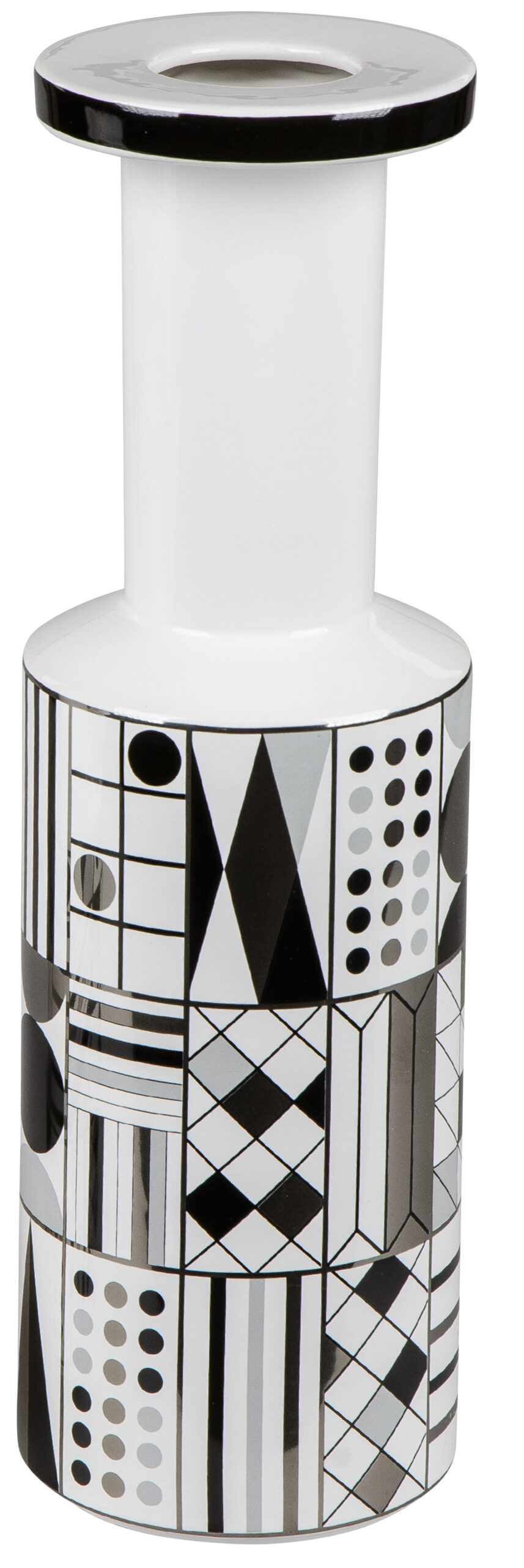 Keramik-Vase schwarz weiß gemustert Blumenvase Flower-Vase Deko-Tischvase moderne Dekovase im Retro-Look 12x39cm Tischdeko
