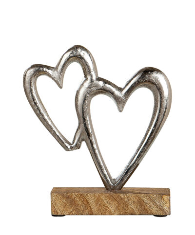 modernes Wohnaccessoires zwei Herzen auf Sockel Alu-Herz Dekoherz zum stellen Wohndeko Zimmerdeko mit Mangoholz silber natur 27x5x27cm 29,90 €